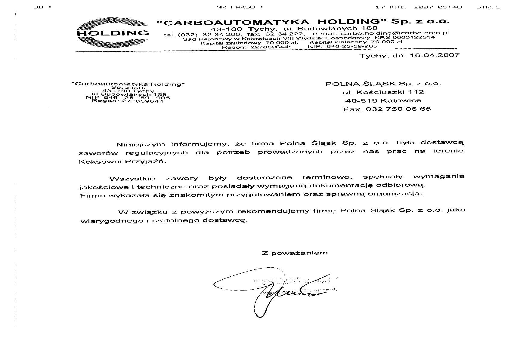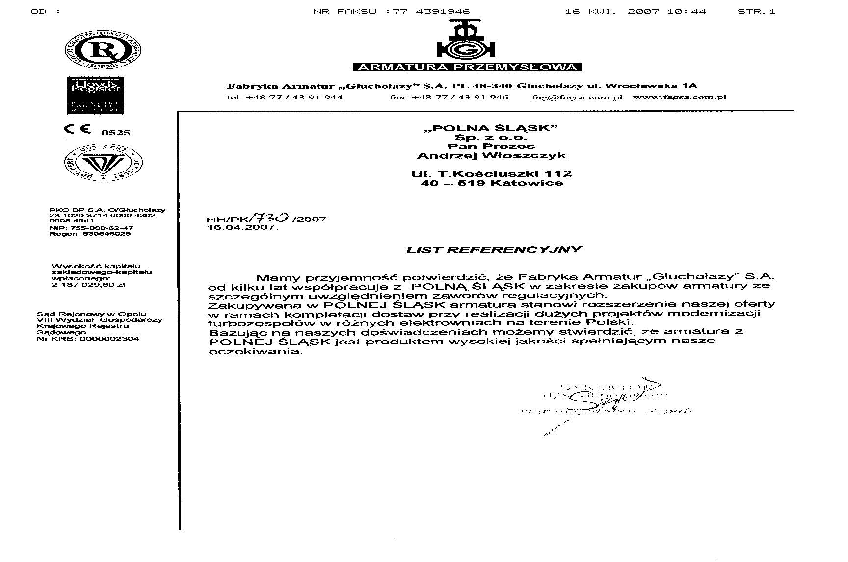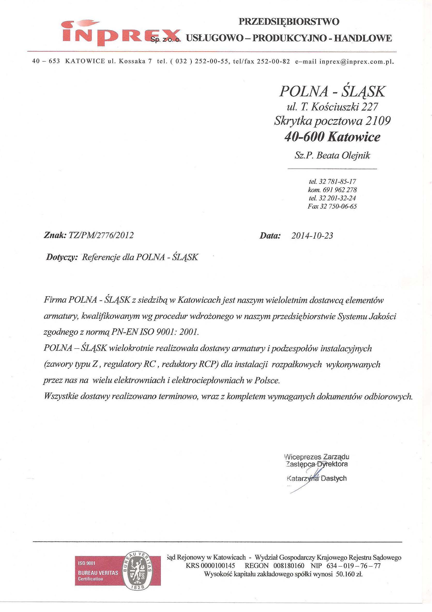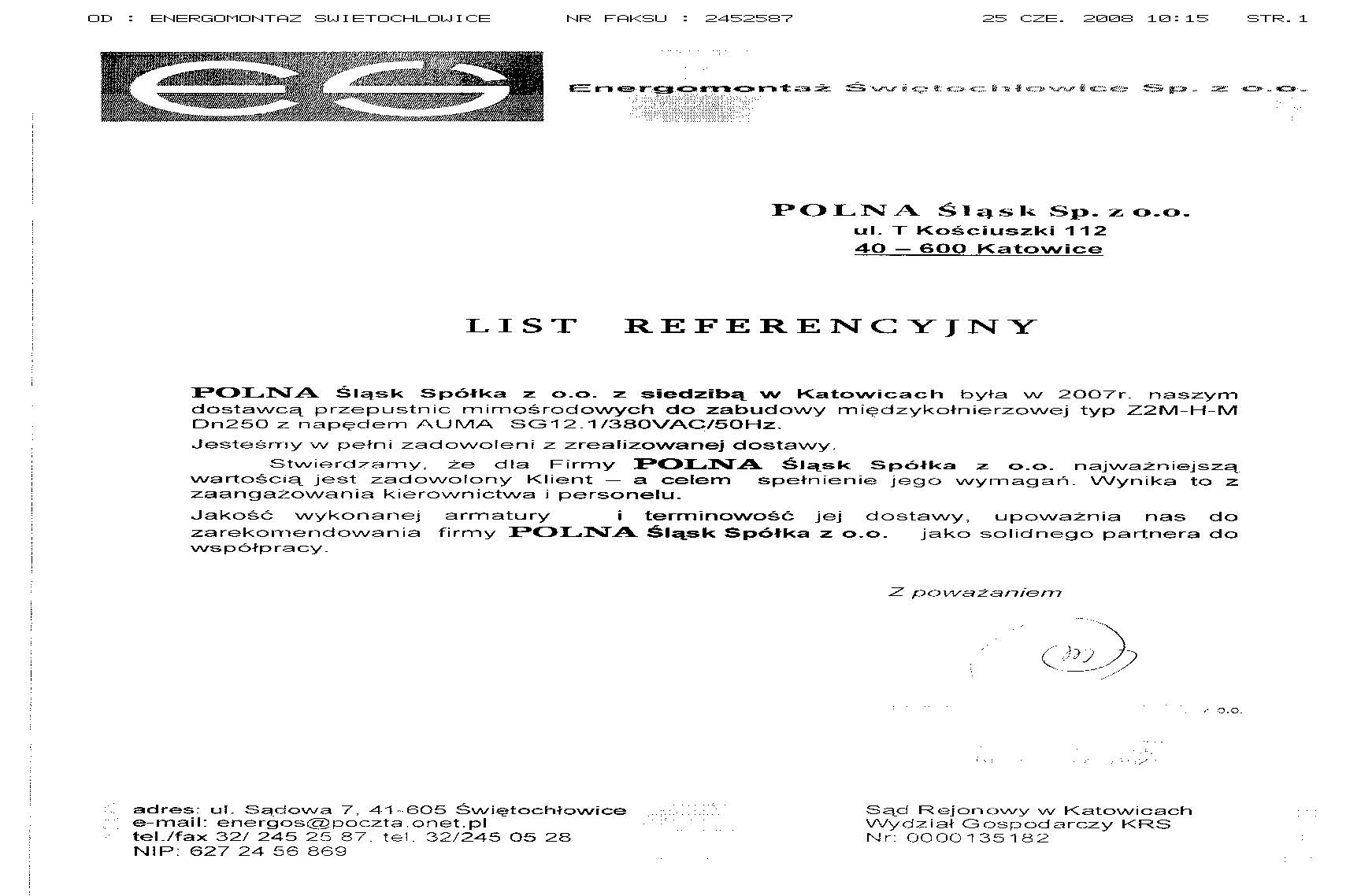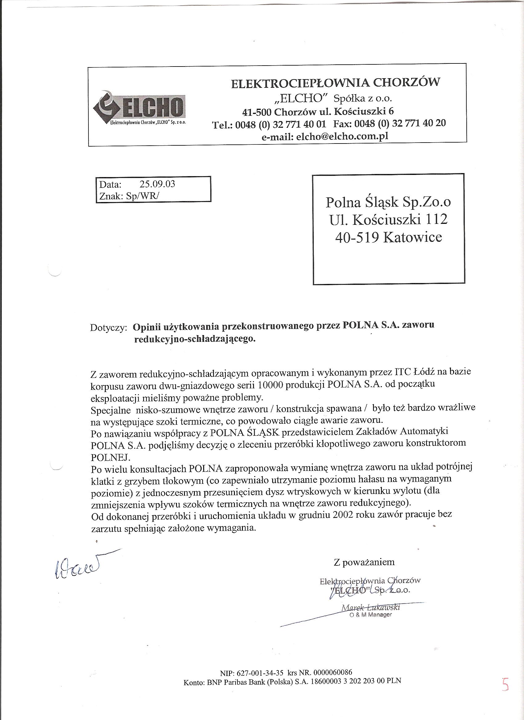 40JSW KOKS S.A.Zabrze Zawory regulacyjneDostawa