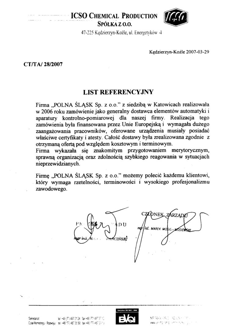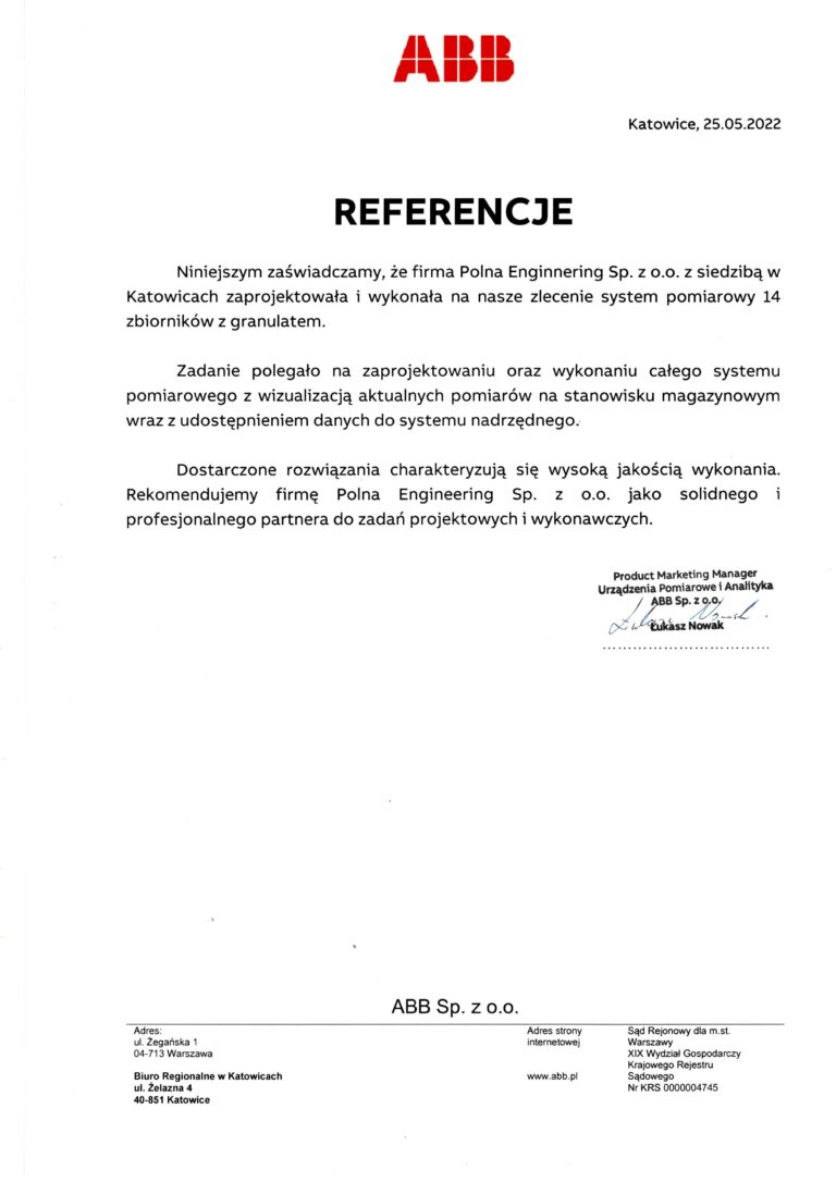 29Paccor Sp.z o.o.Siemianowice ŚląskieUkład pomiaru poziomu w zbiornikach silosowychProjekt, dostawa, montaż uruchomienie