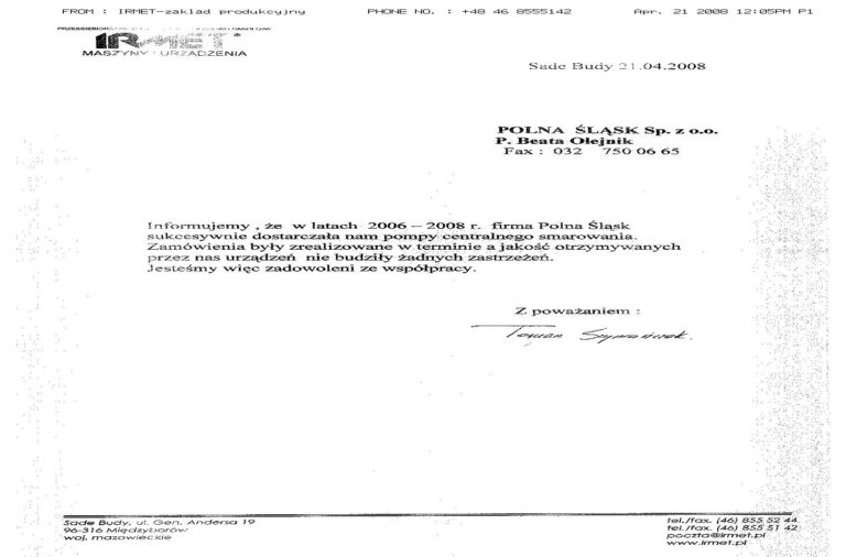 16CMC ZawiercieZawiercieSukcesywna dostawa zaworów i urządzeń centralnego smarowaniaDostawa, serwis