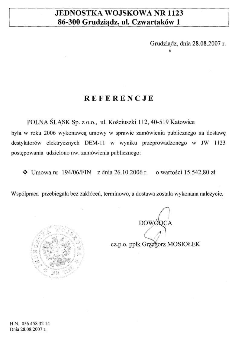 38PCC Rokit S.A.Brzeg DolnySukcesywna dostawa zaworów regulacyjnych + siłownikówdostawa