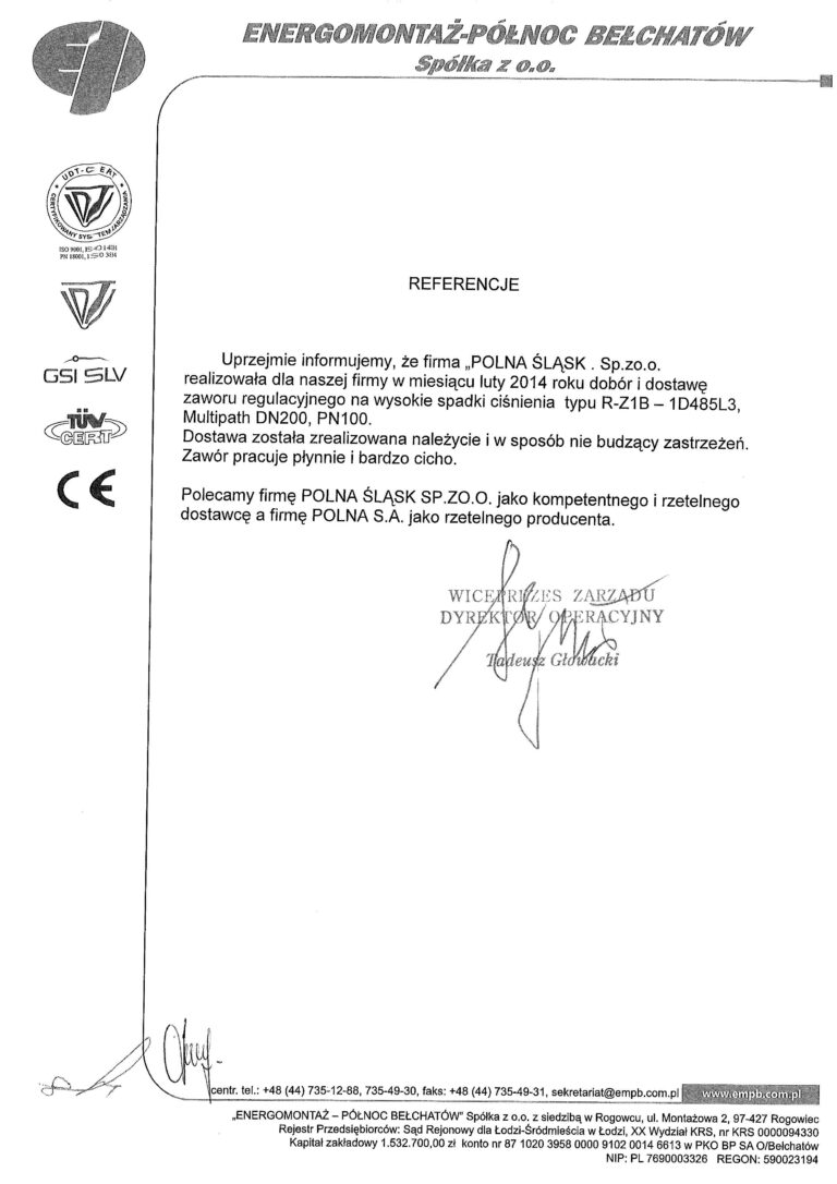 3PGE BełchatówBełchatówZawory specjalne oraz przepustnice z poczwórnym mimośrodem na instalację SuspensjiDostawa