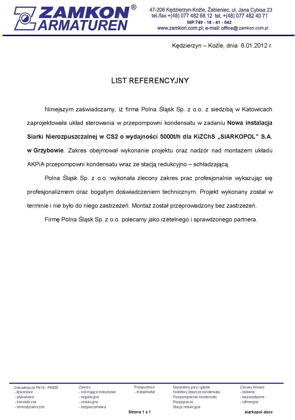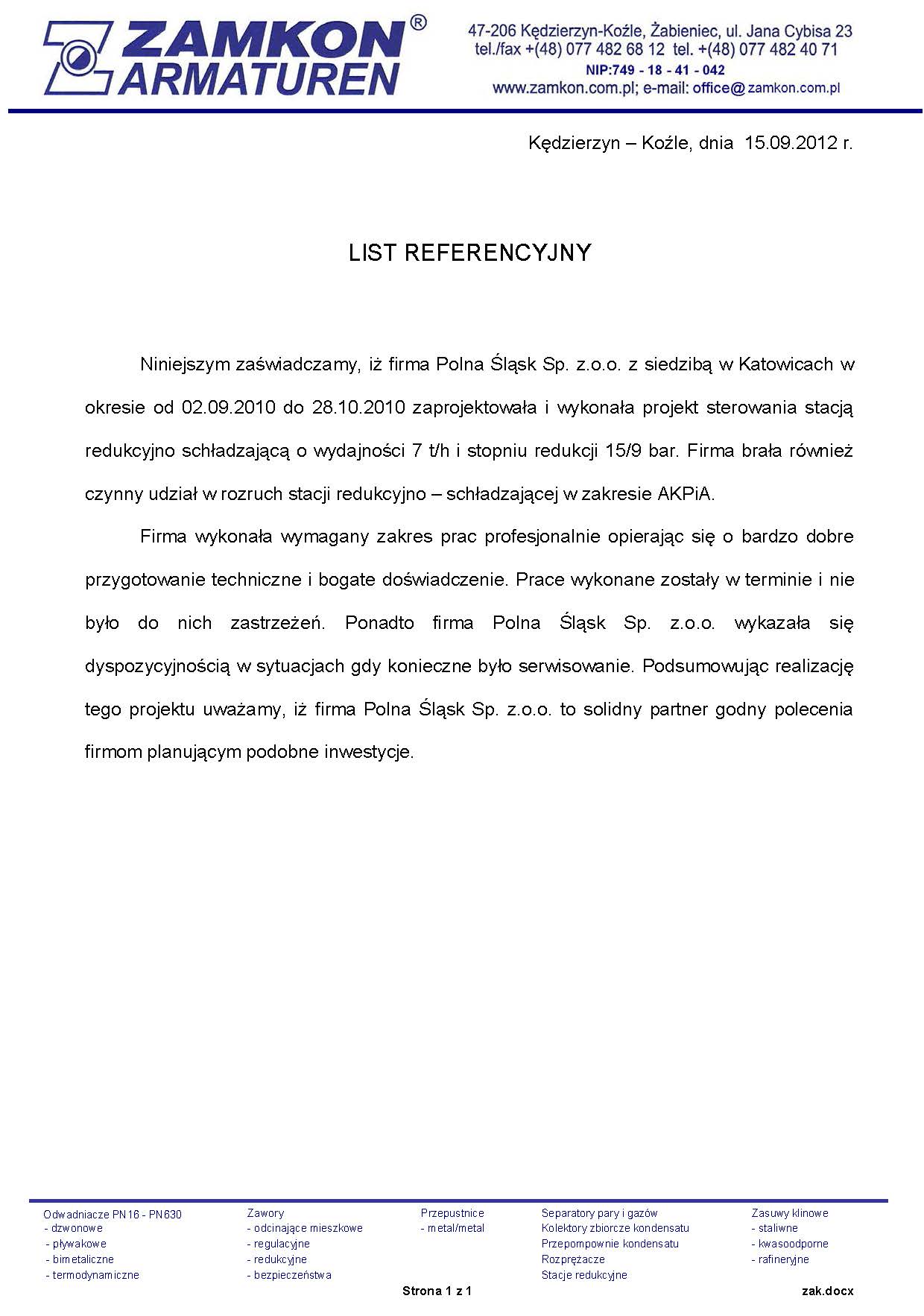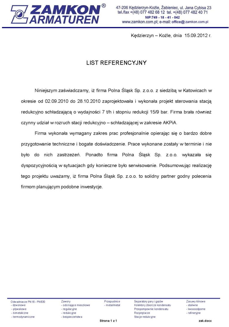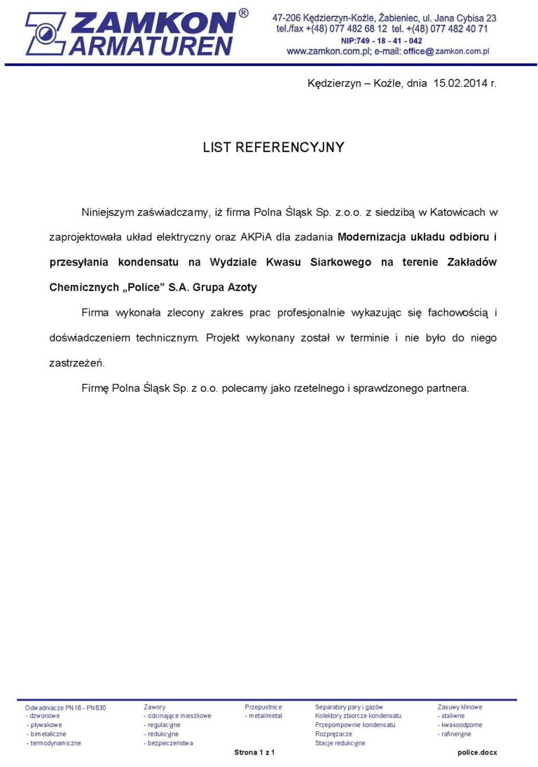 8GRUPA AZOTY ZAK, ZAT, ZAPKędzierzyn Koźle Tarnów, Puławy, Police 3 Stacje redukcyjno schładzające ZAK, 1 stacja redukcyjno schładzająca ZAT, przepompownia kondensatu ZAP ,sukcesywne dostawy zaworówProjekt, dostawa, montaż uruchomienie+ dostawy