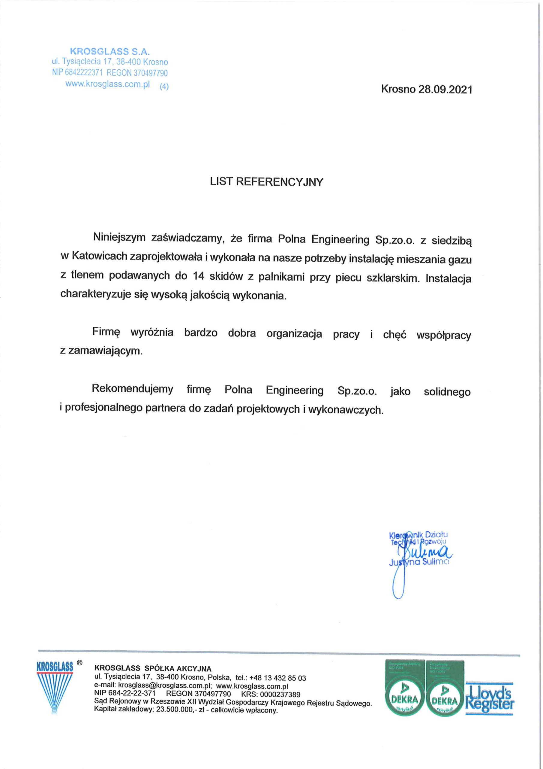 26Krossglas S.A.KrosnoUkład regulacji stosunku gaz-tlen do palników w piecu szklarskimProjekt, dostawa, montaż uruchomienie