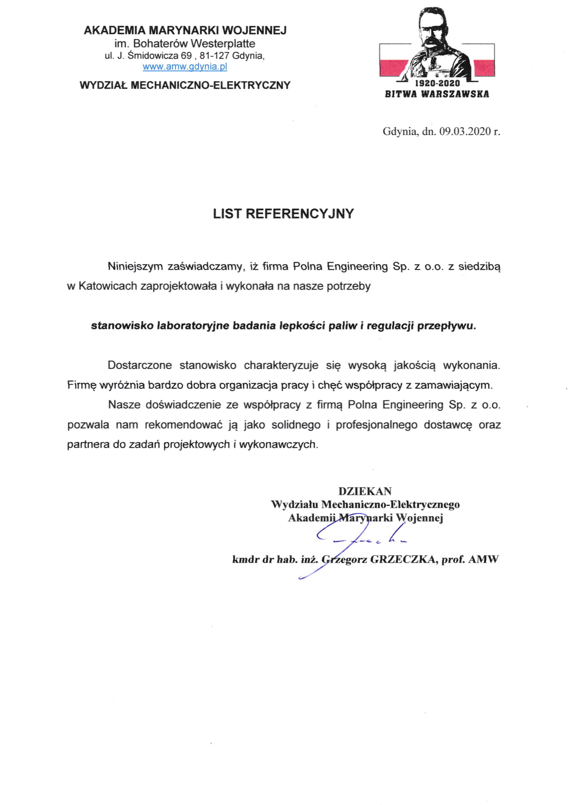 24Akademia Marynarki Wojennej w GdyniGdyniaWykonanie stanowiska do badania lepkości paliwProjekt, dostawa, montaż uruchomienie